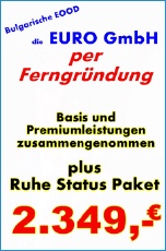 Dieses Paket richtet sich an Unternehmer die zum Start nur eine Basisgründung als Vorsorge Gesellschaft wollen oder brauchen. Also zum Beispiel nicht sofort eine EU-ID brauchen, da die Umsätze sich nach der Ruhepause also Start in den ersten Monaten unter 25.000€ bewegen werden. Außer der Gründungsakte die übrigen 8 Gründungsdokumente nicht Zweisprachig sein müssen, der einfache Registerauszug nur in Bulgarisch beurkundet wird. Die bereit sind bei der Ferngründung die benötigte Beurkundung bei einer bulgarischen Botschaft oder Konsulat durchzuführen. |